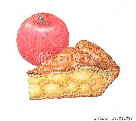 りんごたっぷりカットアップルパイ 水彩色鉛筆イラスト