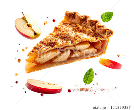Slice of Golden Apple Pie Crust Art Illustration Isolated on White Background