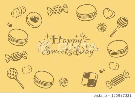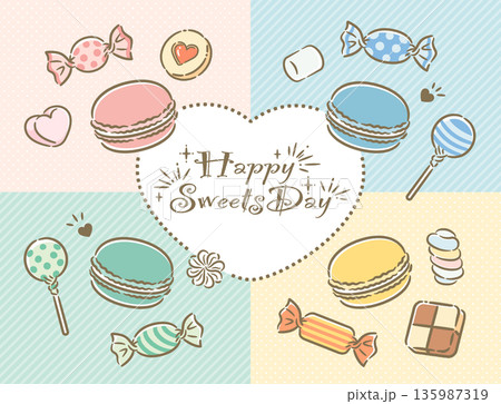 パステルカラーの砂糖菓子とグラデーション背景のフレーム