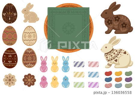 北欧フォークアート風イースターのお菓子バスケット フラットレイ・素材セット