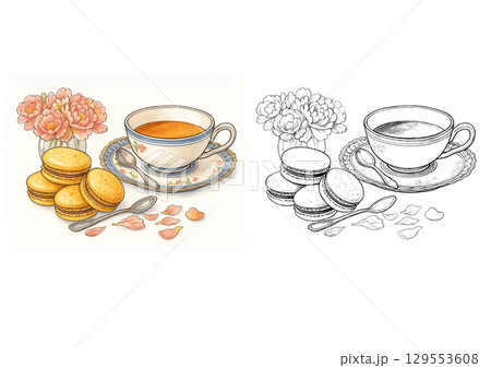 マカロンと紅茶 ティーカップイラスト Generative AI