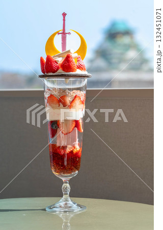 春限定いちごパフェ・大阪城を背景にしたフォトジェニックデザート