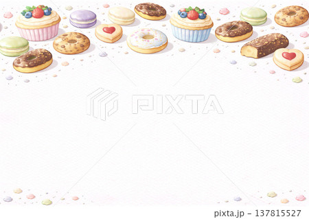 スイーツシリーズ:中央余白を囲むお菓子のフレーム背景