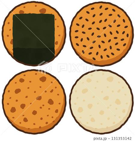 手描き水彩の醤油煎餅とごま煎餅と海苔煎餅イラストセット