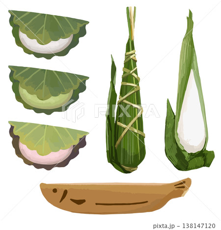 ちまきのベクターイラストセット 端午の節句の和菓子素材