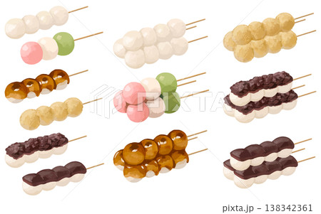 和菓子・お団子のさまざまな味のバリエーションイラスト
