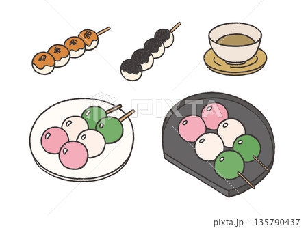 三色団子・みたらし団子・こしあん団子のイラストセット