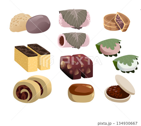 ゆるめシンプル和菓子セット6 ベタ塗り