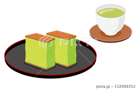 抹茶ようかん2切れ- フラットアイソメトリックイラスト