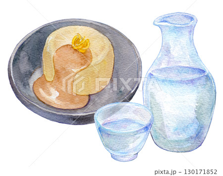 水彩イラスト 秋イメージ 日本酒と紅葉
