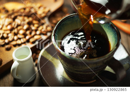 ホットコーヒー・コーヒーカップに注がれるコーヒー