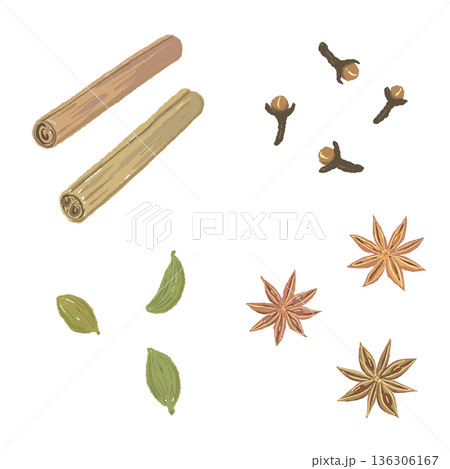 チャイに使われるミックススパイスの材料セット(お茶なし)