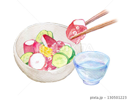 水彩イラスト 手描きイラスト 冷酒とタコの酢の物