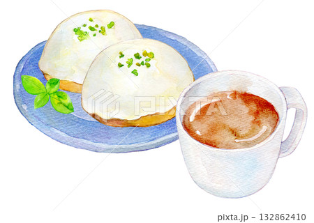水彩イラスト 手描きイラスト レモンケーキとコーヒーのセット 喫茶店メニュー