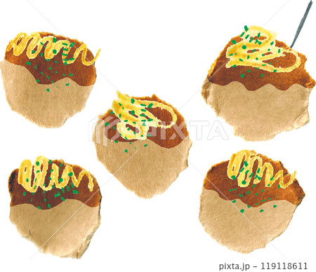 手描き風イラスト かわいいたこ焼きたちのイラスト