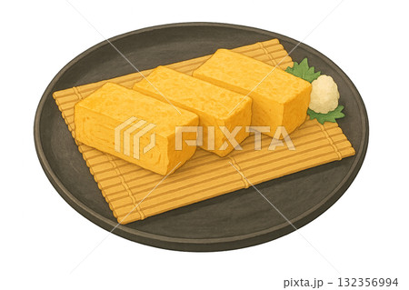 美味しそうなだし巻き卵と大根おろしの水彩イラスト