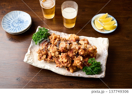 唐揚げ定食、鶏肉のからあげ、から揚げ、人気のおかず、お惣菜、揚げ物、とり肉料理。