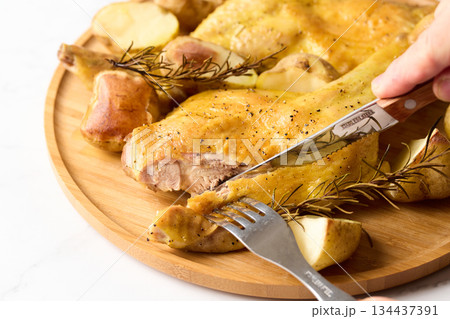 手作りのローストチキン、ローストレッグ、クリスマスチキンです。骨付き鶏もも肉焼き。