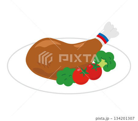 christmas クリスマス ローストチキン 食べ物 料理 チキン シンプル イラスト素材