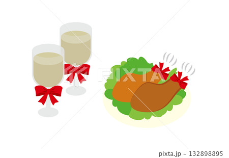 ローストチキンのイラスト素材|クリスマス料理・チキンレッグ・透過PNG