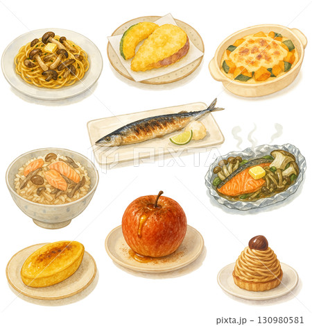 秋 料理 挿絵 切り抜き 素材 水彩イラスト