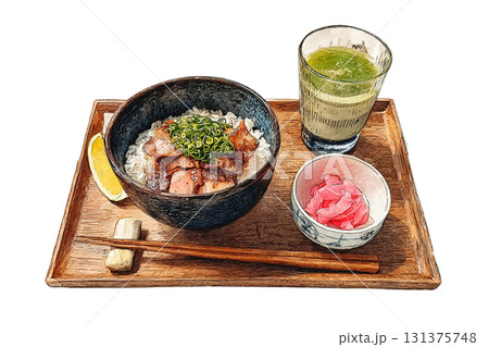 手書き水彩風 照り焼きチキン丼