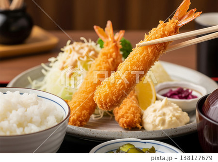 海老天ぷらが豪快に盛られた本格和風天丼定食