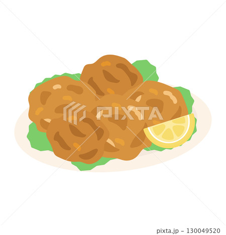 皿に盛り付けたカキフライ、牡蠣フライのイラスト素材