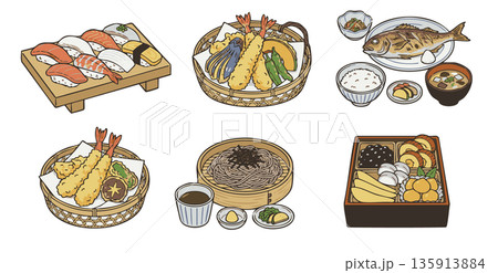 寿司・天ぷら・蕎麦・おせち料理など人気の和食イラストセット