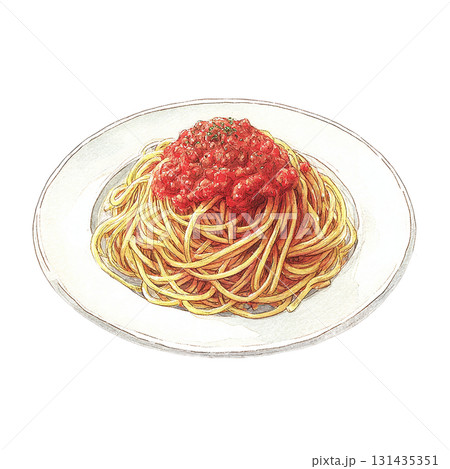 水彩風のミートソーススパゲッティのイラスト素材(洋食・パスタ・シンプル構図)