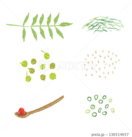 色々な薬味の刻みセットイラスト 料理に散らして使う和風素材