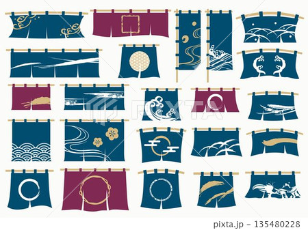 おしゃれな暖簾のイラスト素材セット