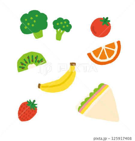お弁当のおかずや食べ物の手描き風イラストセット