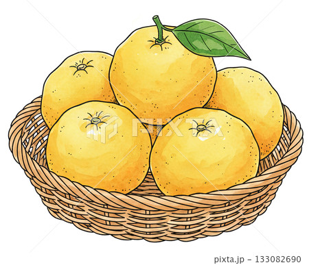 筆タッチのレモンとスライスされたレモンのイメージイラスト
