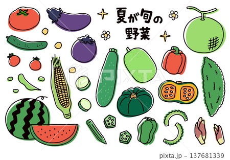 夏が旬の野菜のイラストセット