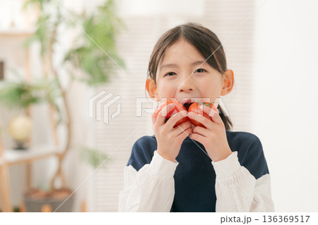 トマトを食べる女の子