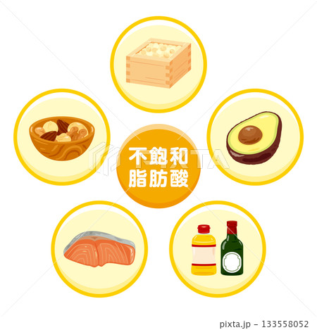 様々な不飽和脂肪酸を多く含む食品のイラストセット