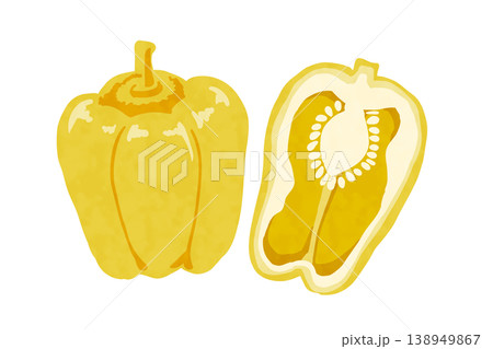 黄色のパプリカのアイコン(線画カラー)のイラスト