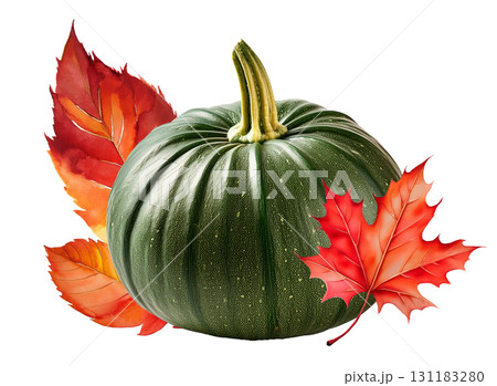 丸ごとのかぼちゃの水彩イラスト(切り抜き)