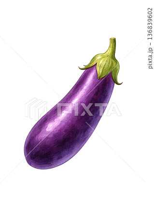 シンプルな紫の茄子のイラスト、白バック