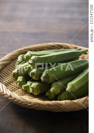 ざるに盛った国産オクラ