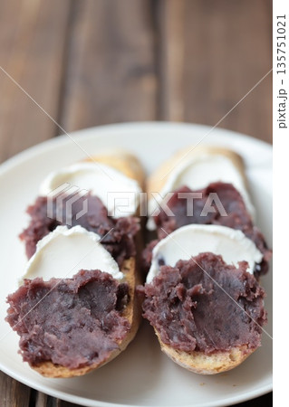 全粒粉のリュスティックで作った餡子クリームチーズのオープンサンド