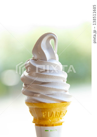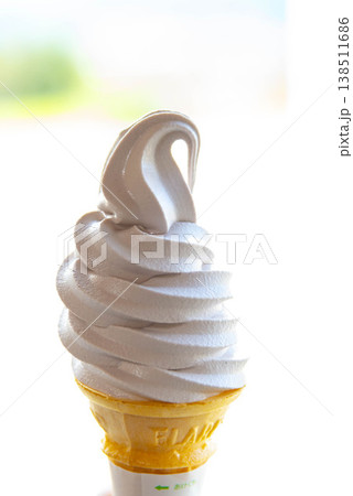 手持ちのソフトクリーム 北海道ミルクソフト 屋外で食べるスイーツ 夏の観光イメージ