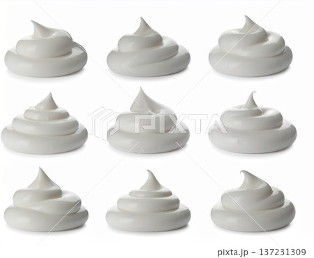 いろいろな形のホイップクリームの素材 カラフル 白背景