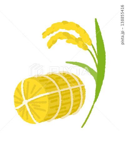 米俵 稲穂 水彩 イラスト かわいい デフォルメ 五穀豊穣 収穫 縁起物 農業 素材