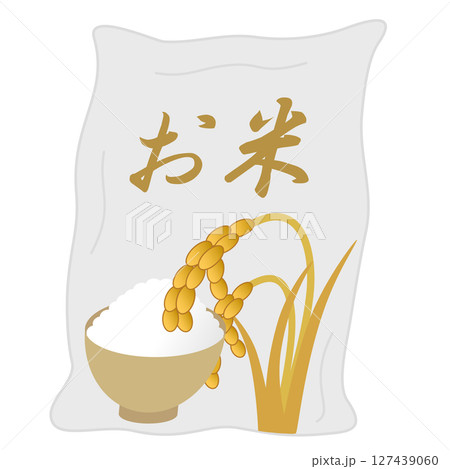 白米と稲穂が手描きでされたお米の袋のイラスト素材