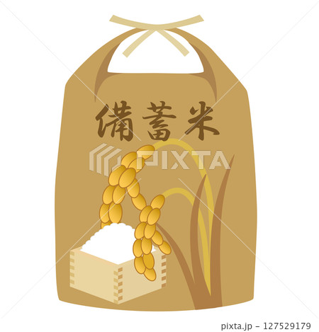 備蓄米。古米の名称と収穫年を記載したセットイラスト