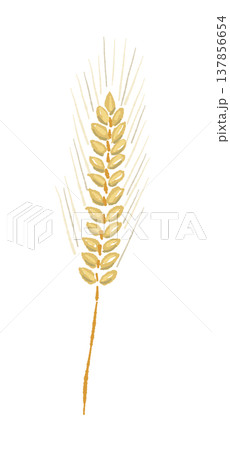 まっすぐな黄金色の麦の穂(単体)の手描きイラスト素材