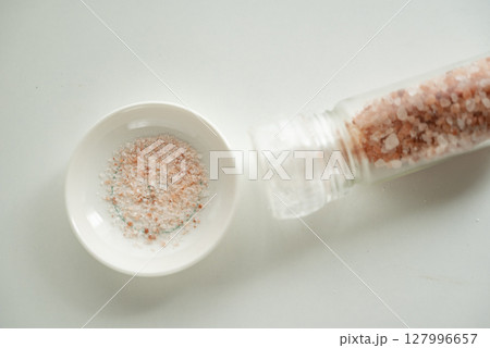 白背景にピンクのヒマラヤ岩塩のイメージ