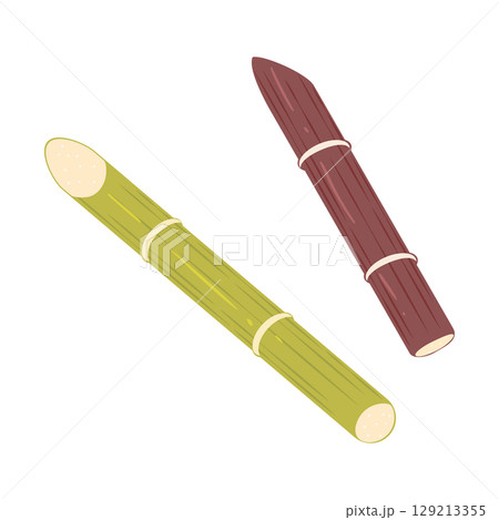 Sugar stalk cane cartoon vector set. Leaves stems fructose sucrose sweet plant production, sugary powder shrub agricultural reed , isolated illustrations on white background